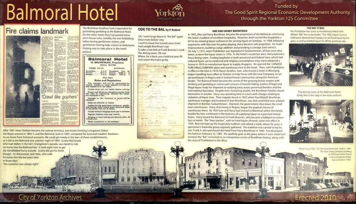 On July 1 of 1915 a government ban on the sale of liquor -- so-called prohibition -- came into effect in Saskatchewan, and 406 bars did not open that day. They stayed closed for nine years. But while the sale of liquor within the province was prohibited, there were loopholes. And if there were loopholes, Harry Bronfman, the owner of the Balmoral Hotel in Yorkton wasn’t shy about exploiting them.
